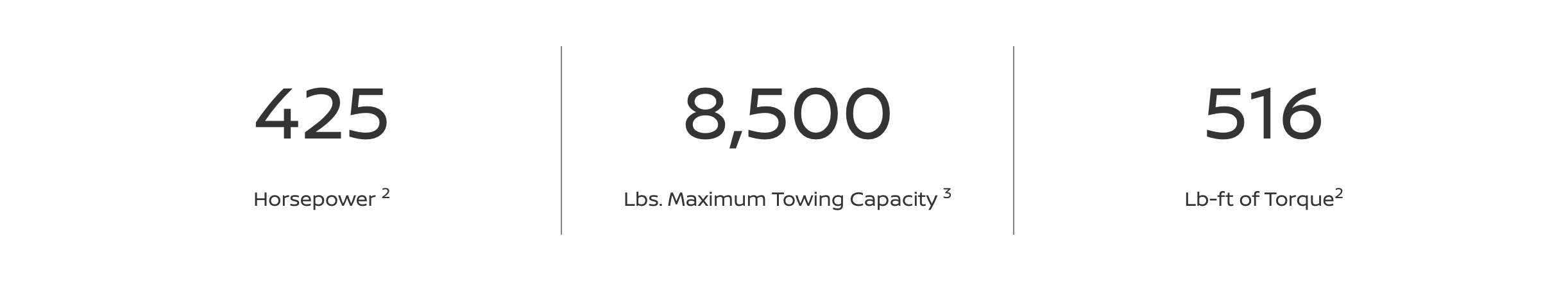2. Horsepower varies by trim level and use of fuel grade. Contact dealer for details.
